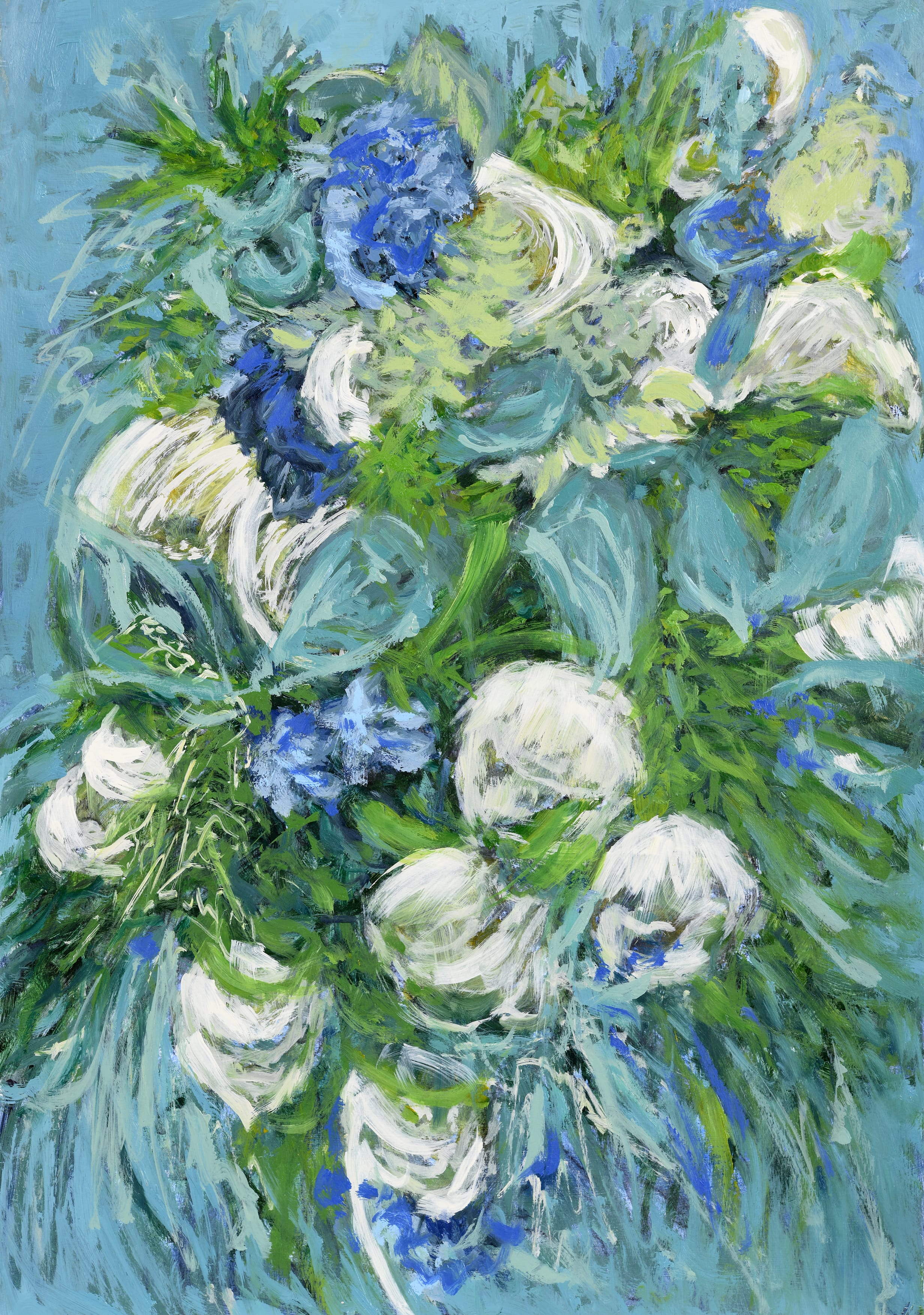 Images will be sent of work in progress. The remaining balance will be made prior to final adjustments. If framing is required this will take approximately one week from completion of your bouquet painting.